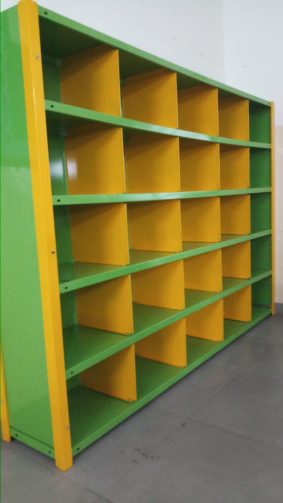 Slotted angle (also sometimes referred to as slotted angle iron) is a system of reusable metal strips used to construct shelving, frames, work benches, equipment stands and other structures. Thickness of shelves range from 0.70, 0.80, 0.90, 1.00, 1.20 and 1.60 mm to suite your needs with the option of re-inforcement stiffners in the shelves. Shelves with other thickness can be made as per customer's requirement.